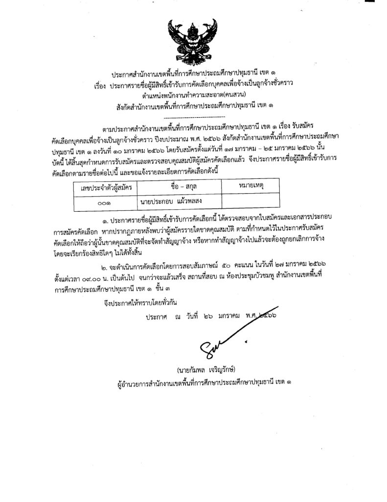 ประกาศรายชื่อผู้มีสิทธิ์เข้ารับการคัดเลือกบุคคลเพื่อจ้างเป็นลูกจ้างชั่วคราว ตำแหน่งพนักงานทำความสะอาด(คนสวน)กลุ่มบริหารงานบุคคล, ข่าวประชาสัมพันธ์, ประการศสอบ บรรจุ / By person ประกาศรายชื่อผู้มีสิทธิ์เข้ารับการคัดเลือกบุคคลเพื่อจ้างเป็นลูกจ้างชั่วคราว ตำแหน่งพนักงานทำความสะอาด(คนสวน)